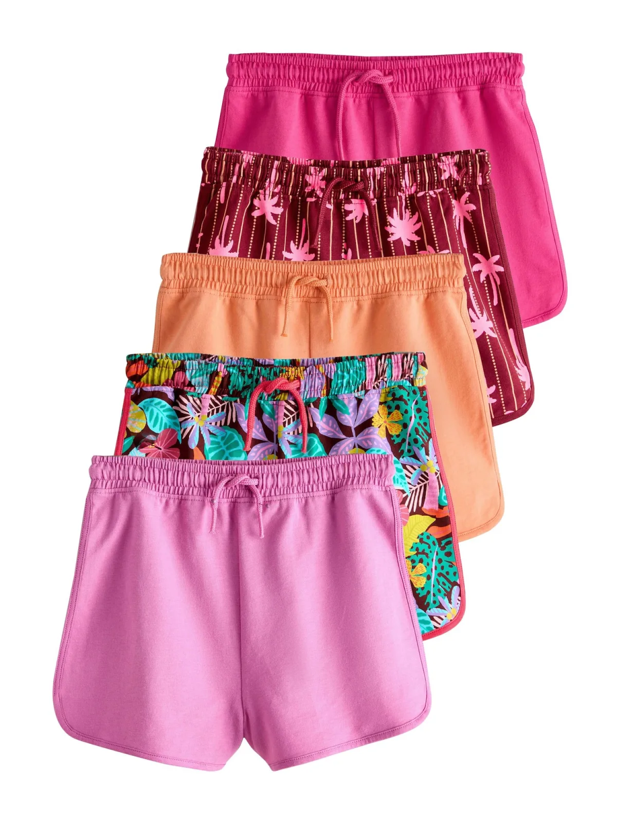 Design: Gevoerde zoom/rand, Taille met trekkoord, Elastische taille/zoom; Type sluiting: Elastische band; Materiaal: Jersey; Details: Gedrapeerd; Extra's: All-over patroon, Op staal naden; Lengte: Kort/mini; Pasvorm: Normale pasvorm; Aantal: 5 Pack; Pasvorm: Regular; Taillehoogte: Mid waist