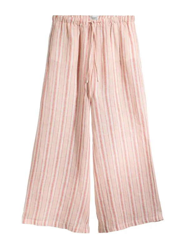Design: Elastische taille/zoom; Materiaal: Linnen; Motief: Gestreept; Details: Gedrapeerd; Extra's: All-over patroon; Lengte: Lang/maxi; Pasvorm: Wide leg; Taillehoogte: High waist