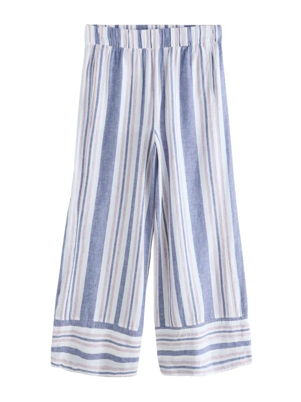 Design: Elastische taille/zoom; Materiaal: Linnen; Motief: Gestreept; Details: Gedrapeerd; Extra's: All-over patroon; Lengte: Lang/maxi; Pasvorm: Wide leg; Taillehoogte: High waist