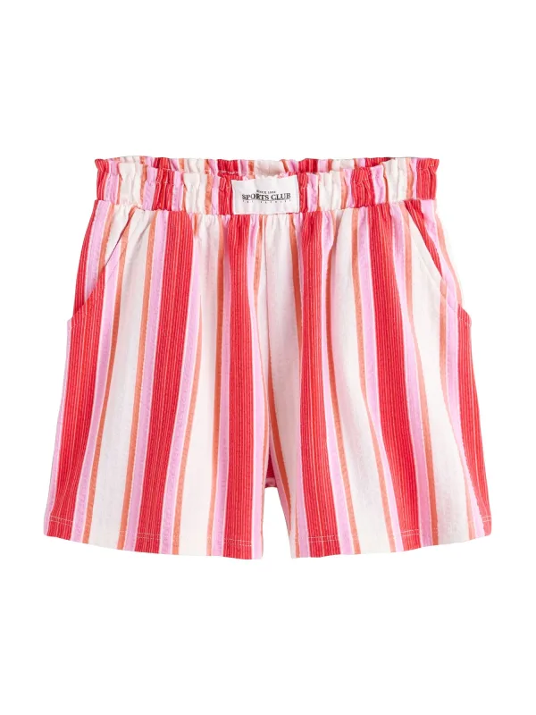 Design: Gevoerde zoom/rand; Type sluiting: Elastische band; Materiaal: Katoen; Motief: Gestreept; Details: Ruches, Gedrapeerd; Extra's: All-over patroon; Lengte: Kort/mini; Pasvorm: Normale pasvorm; Pasvorm: Regular; Taillehoogte: High waist