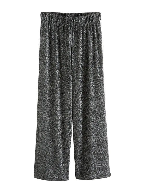 Design: Elastische taille/zoom; Materiaal: Viscose; Motief: Effen; Details: Gedrapeerd; Extra's: Glitterend; Lengte: Lang/maxi; Pasvorm: Wide leg; Taillehoogte: Mid waist