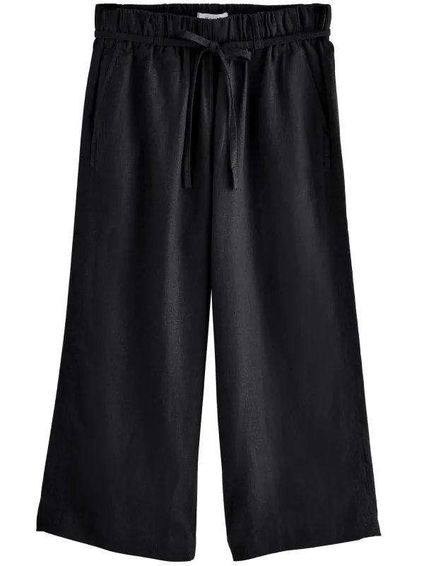 Design: Gevoerde zoom/rand, Met band/snoer; Materiaal: Linnen; Motief: Effen; Details: Gedrapeerd; Extra's: Op staal naden, Lichte stof; Lengte: 3/4 lengte; Pasvorm: Wide leg; Taillehoogte: Mid waist
