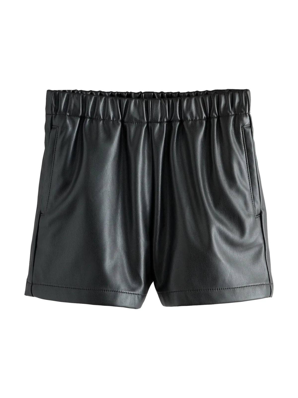Design: Elastische taille/zoom; Materiaal: Imitatieleder; Motief: Effen; Details: Gedrapeerd; Extra's: Gecoat; Lengte: Kort/mini; Pasvorm: Regular