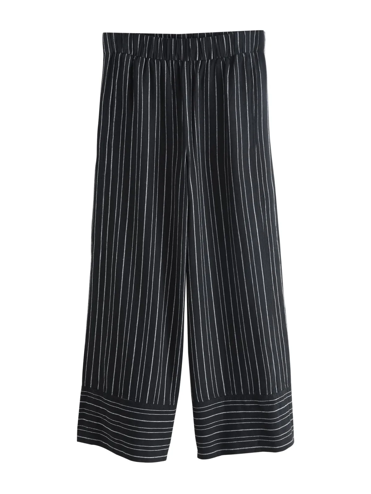Design: Gevoerde zoom/rand, Elastische taille/zoom, Zakken aan de zijkant; Materiaal: Linnen; Motief: Gestreept; Details: Gedrapeerd; Extra's: All-over patroon; Lengte: Lang/maxi; Pasvorm: Wide leg; Taillehoogte: High waist