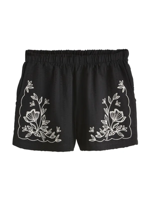 Design: Elastische taille/zoom, Zakken aan de zijkant; Materiaal: Jersey; Motief: Bloemenprint; Details: Borduursels, Gedrapeerd; Extra's: Met textuur, Voelt zacht aan; Lengte: Kort/mini; Pasvorm: Regular; Taillehoogte: Mid waist