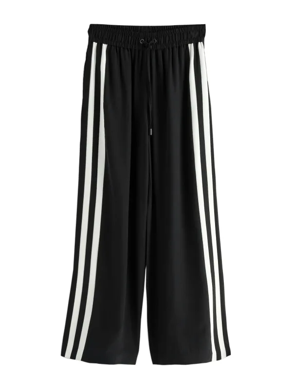 Design: Taille met trekkoord, Elastische taille/zoom; Type sluiting: Elastische band; Materiaal: Viscose; Motief: Gestreept; Details: Gedrapeerd, Zijstrepen; Extra's: Metalen oogjes; Lengte: Lang/maxi; Pasvorm: Wide leg; Taillehoogte: Mid waist