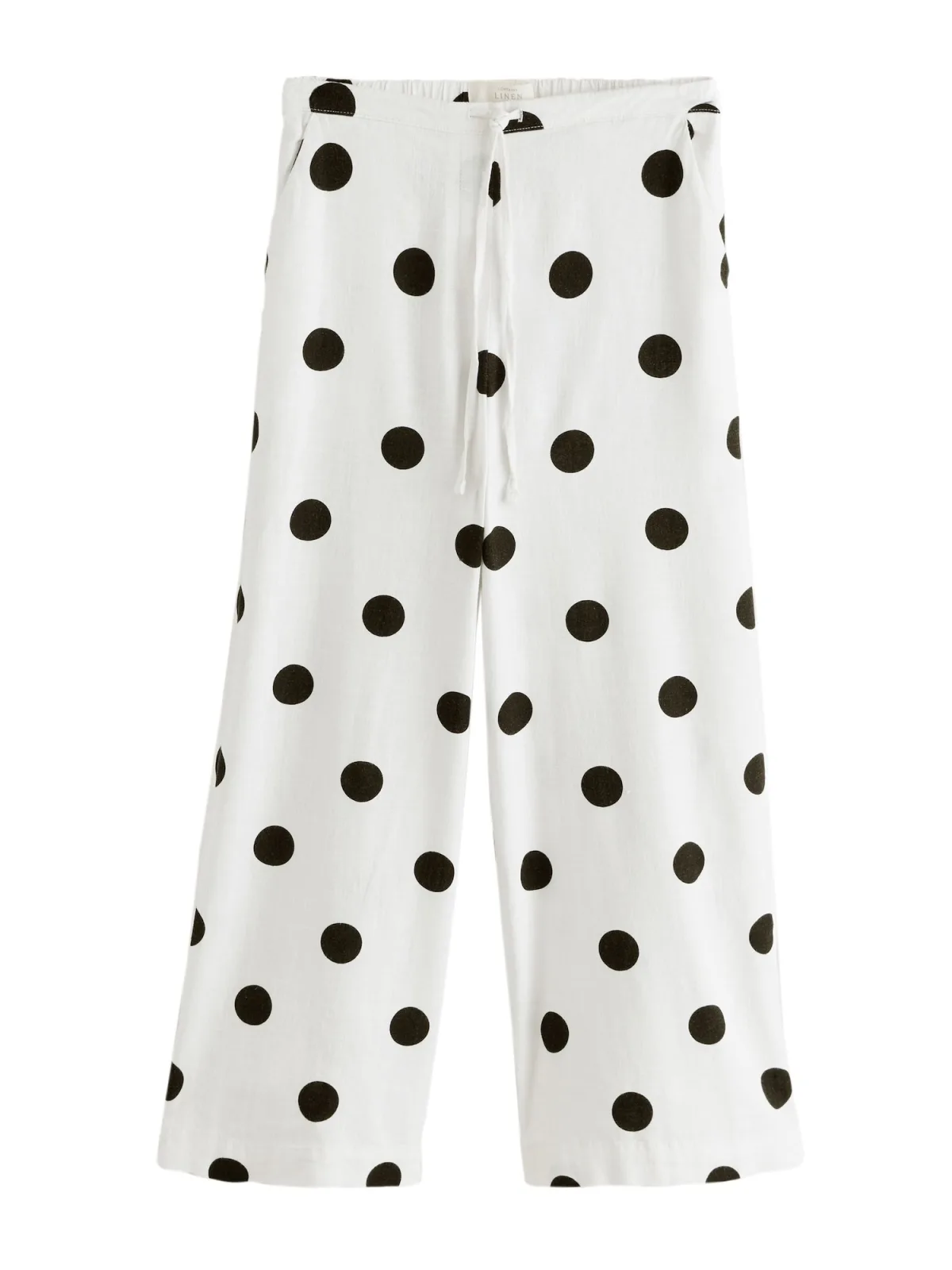 Design: Taille met trekkoord; Materiaal: Linnen; Motief: Gestippeld; Extra's: All-over patroon; Lengte: Lang/maxi; Pasvorm: Wide leg; Taillehoogte: High waist