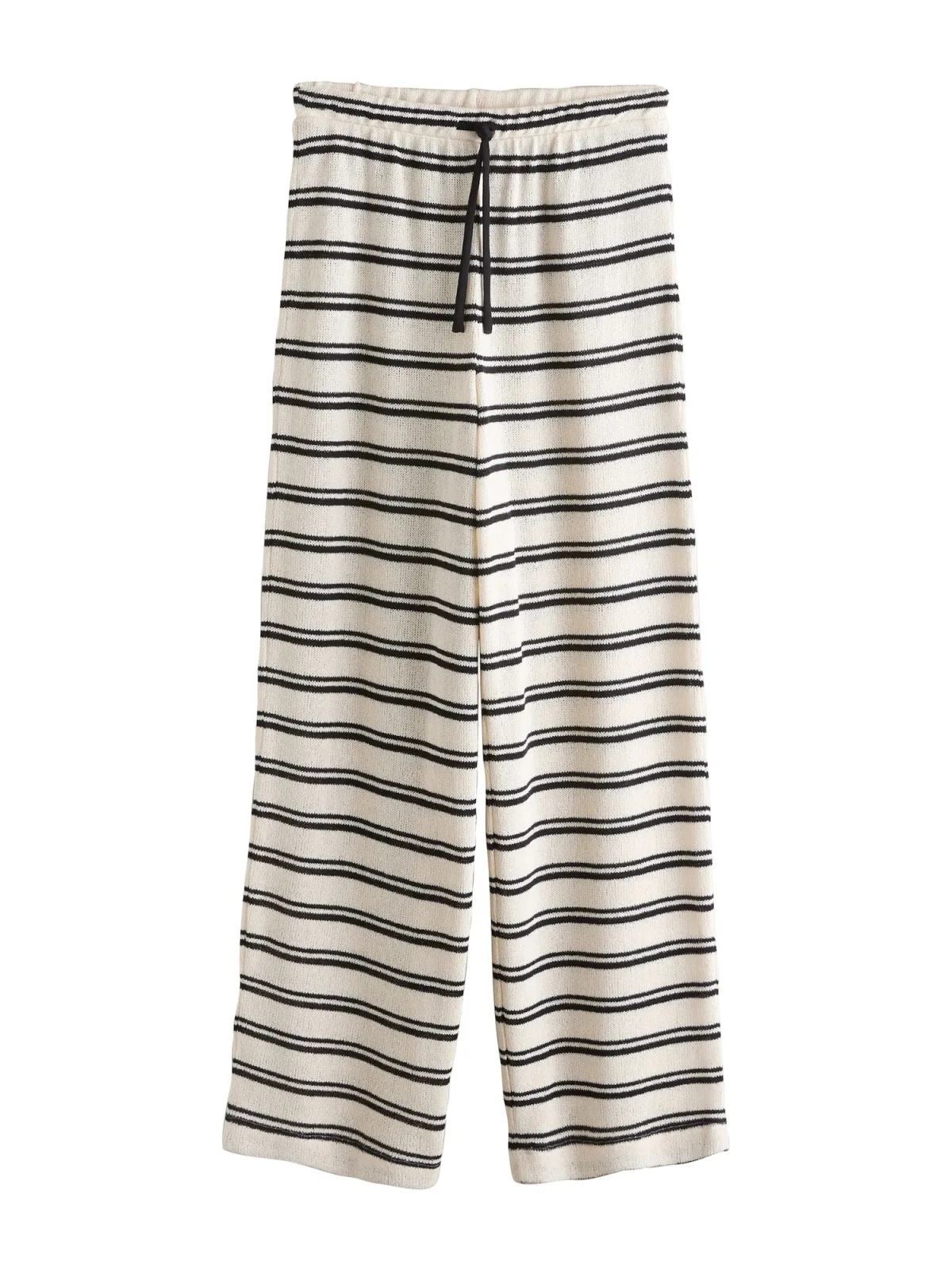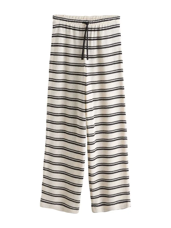 Design: Taille met trekkoord, Rechte zoom; Materiaal: Knitwear; Motief: Gestreept; Extra's: All-over patroon, Met textuur, Voelt zacht aan; Lengte: Lang/maxi; Pasvorm: Wide leg; Taillehoogte: Mid waist