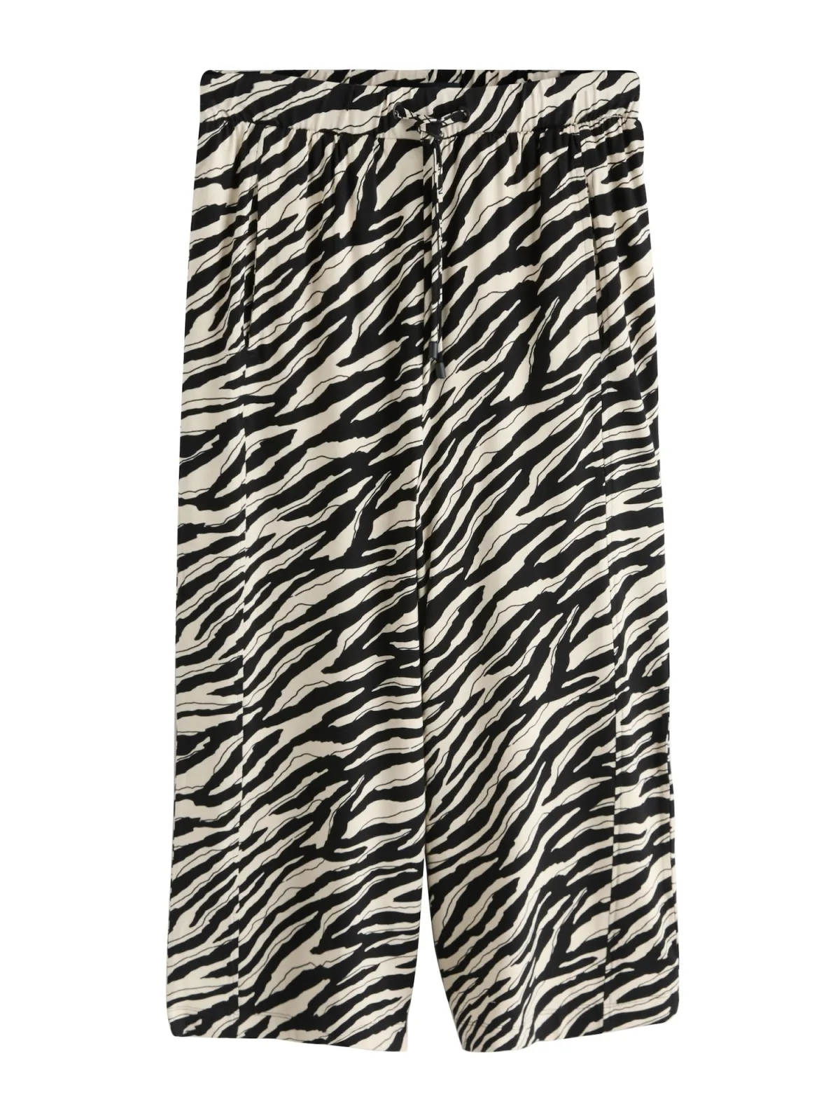 Design: Gevoerde zoom/rand, Taille met trekkoord, Elastische taille/zoom, Zakken aan de zijkant; Materiaal: Jersey; Motief: Dierenprint; Details: Gedrapeerd; Extra's: All-over patroon, Voelt zacht aan; Lengte: 3/4 lengte; Pasvorm: Wide leg; Taillehoogte: Mid waist
