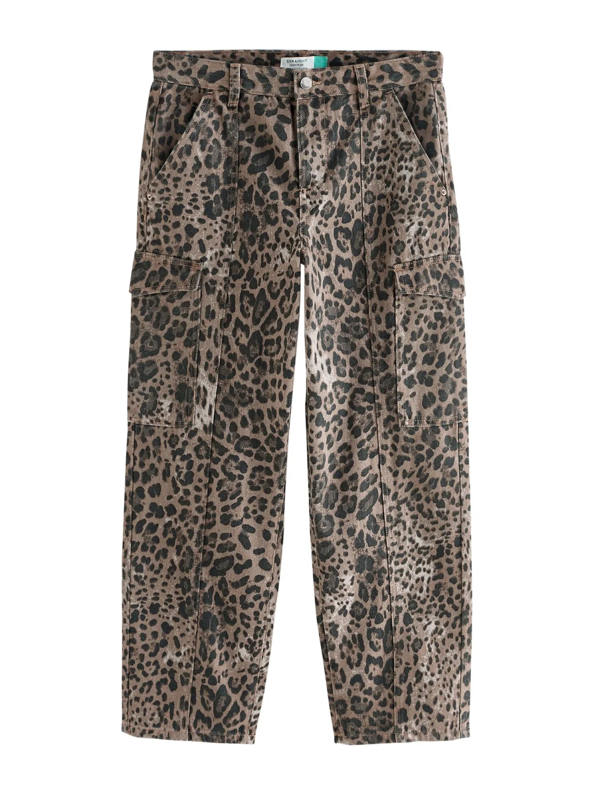 Design: Cargozak; Type sluiting: Ritssluiting; Materiaal: Denim; Motief: Dierenprint; Extra's: Riemlussen; Lengte: Lang/maxi; Pasvorm: Loosefit; Taillehoogte: Low waist