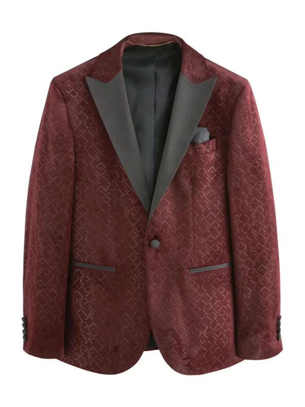 Design: Revers kraag, Borstzak, Paspelzak; Type sluiting: Knoopsluiting; Voering: Licht gevoerd; Materiaal: Fluweel/Nicky Velours; Extra's: Glanzend, All-over patroon, Voelt zacht aan; Pasvorm: Slim fit