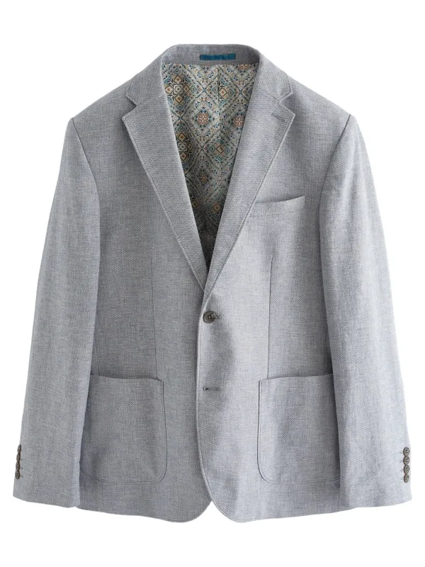 Design: Revers kraag; Type sluiting: Knoopsluiting; Voering: Gedeeltelijk gevoerd; Materiaal: Linnen; Motief: Visgraat; Kraag: Button-down; Extra's: All-over patroon; Pasvorm: Slanke pasvorm; Pasvorm: Slim fit