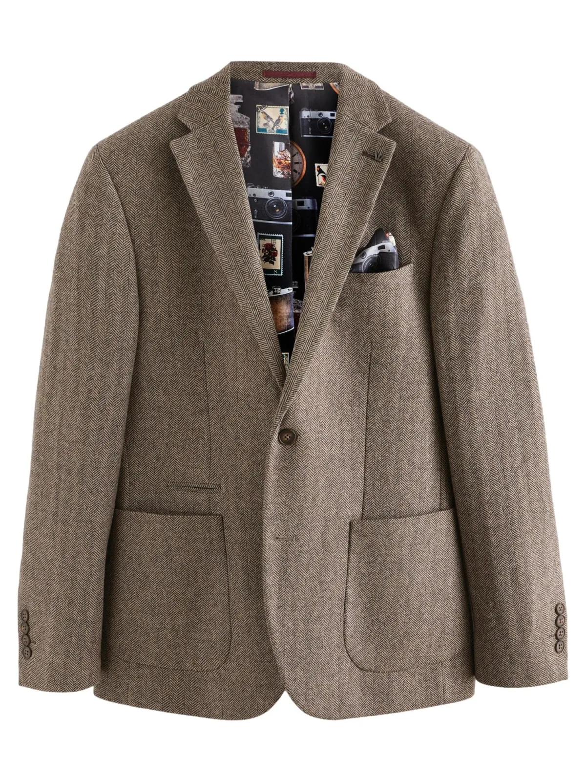 Design: Revers kraag, Opgezette zakken; Type sluiting: Knoopsluiting; Voering: Licht gevoerd; Materiaal: Wol; Motief: Visgraat; Extra's: All-over patroon; Pasvorm: Slim fit