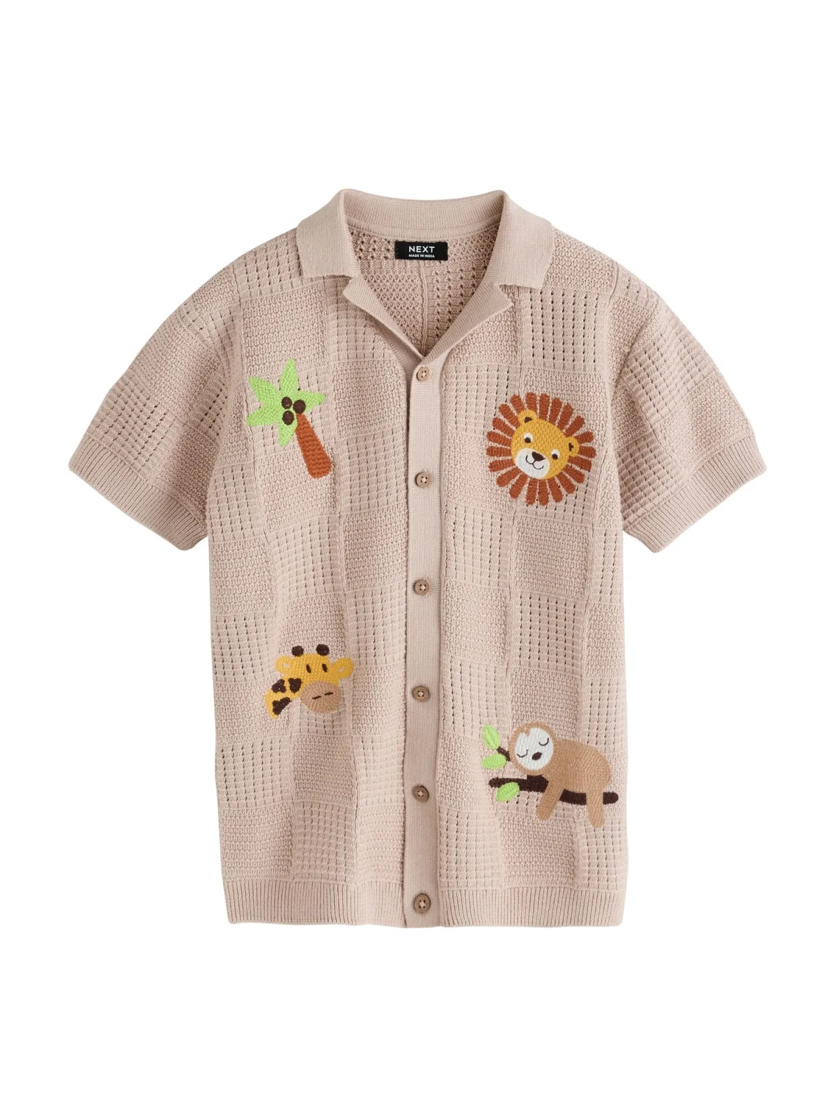 Design: Geribbelde kraag; Type sluiting: Knoopsluiting; Materiaal: Knitwear; Motief: Motiefprint; Extra's: Applicaties; Pasvorm: Normale pasvorm; Armlengte: Kwartmouw