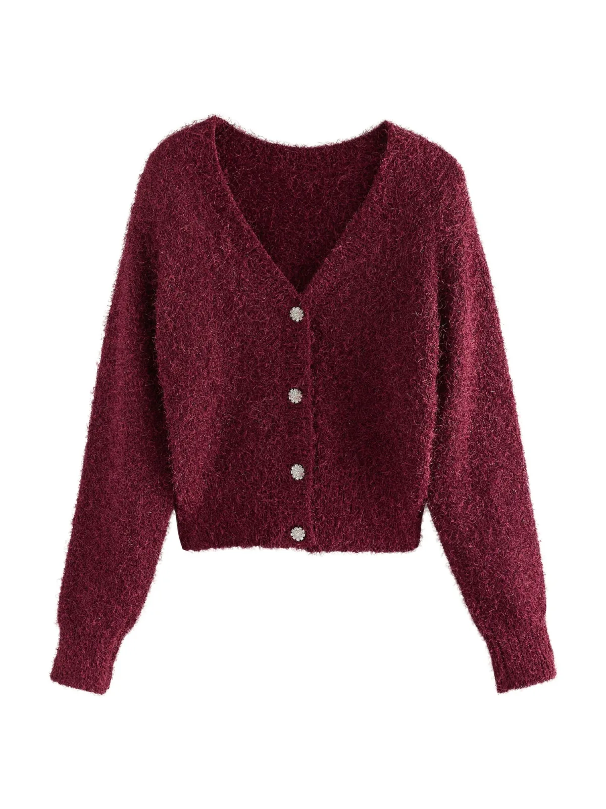 Design: Geribbelde kraag; Type sluiting: Knoopsluiting; Materiaal: Knitwear; Halstype: V-hals; Motief: Effen; Extra's: Met textuur; Pasvorm: Normale pasvorm; Armlengte: Lange mouw; Lengte: Normale lengte