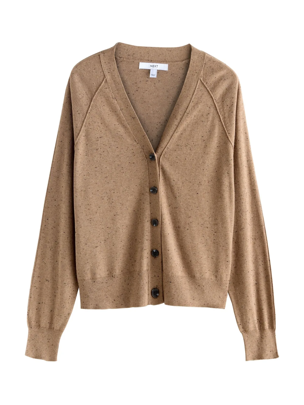 Design: Raglanmouwen, Geribd ceintuurtje; Type sluiting: Knoopsluiting; Materiaal: Knitwear; Halstype: V-hals; Motief: Mélange; Extra's: Voelt zacht aan; Pasvorm: Normale pasvorm; Armlengte: Lange mouw; Lengte: Normale lengte