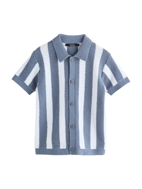 Design: Knop placket; Type sluiting: Knoopsluiting; Materiaal: Knitwear; Halstype: Shark kraag; Motief: Gestreept; Extra's: All-over patroon, Met textuur; Pasvorm: Normale pasvorm; Armlengte: Kwartmouw