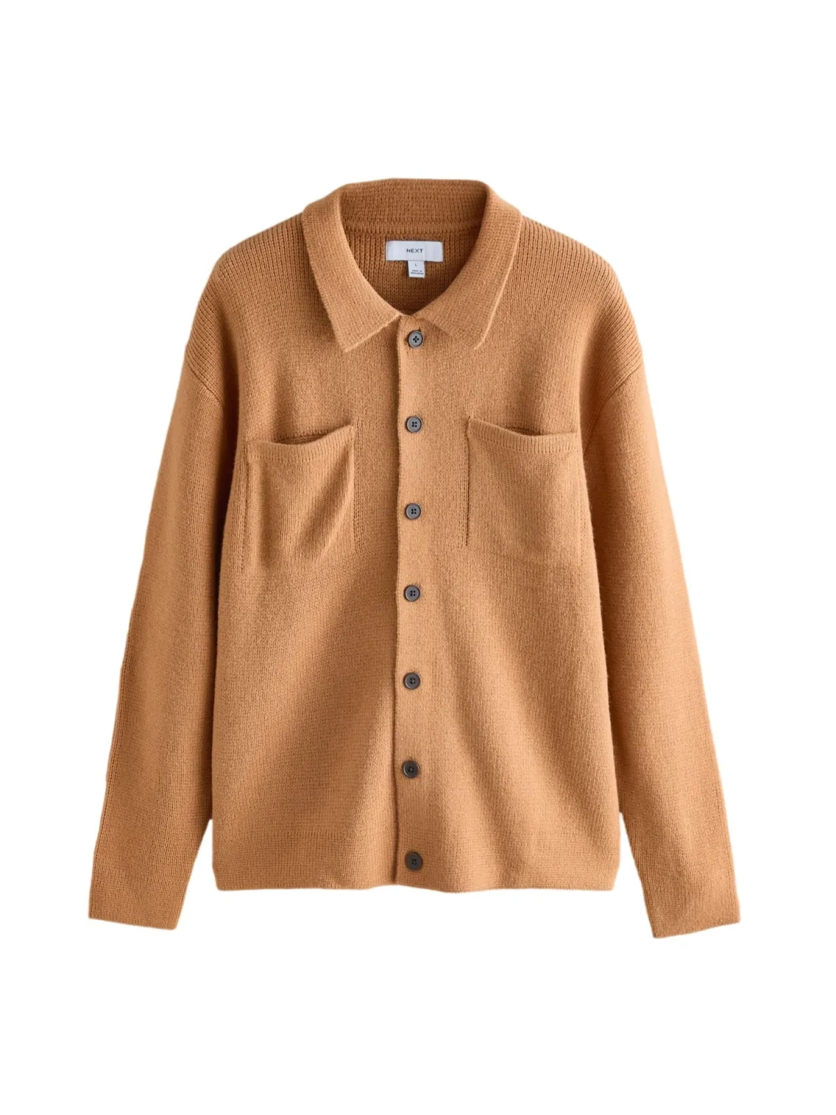 Design: Knop placket, Turn-down kraag, Borstzak; Materiaal: Knitwear; Halstype: Overhemdkraag (klassiek); Motief: Effen; Extra's: Met textuur; Pasvorm: Normale pasvorm; Armlengte: Lange mouw; Lengte: Normale lengte