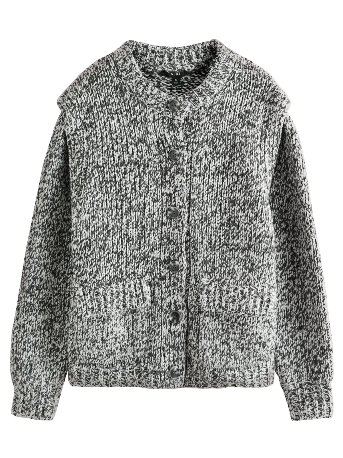 Design: Knop placket, Opgezette zakken; Type sluiting: Knoopsluiting; Materiaal: Knitwear; Halstype: Ronde hals; Motief: Mélange; Extra's: Voelt zacht aan; Pasvorm: Losse pasvorm; Armlengte: Lange mouw; Lengte: Normale lengte