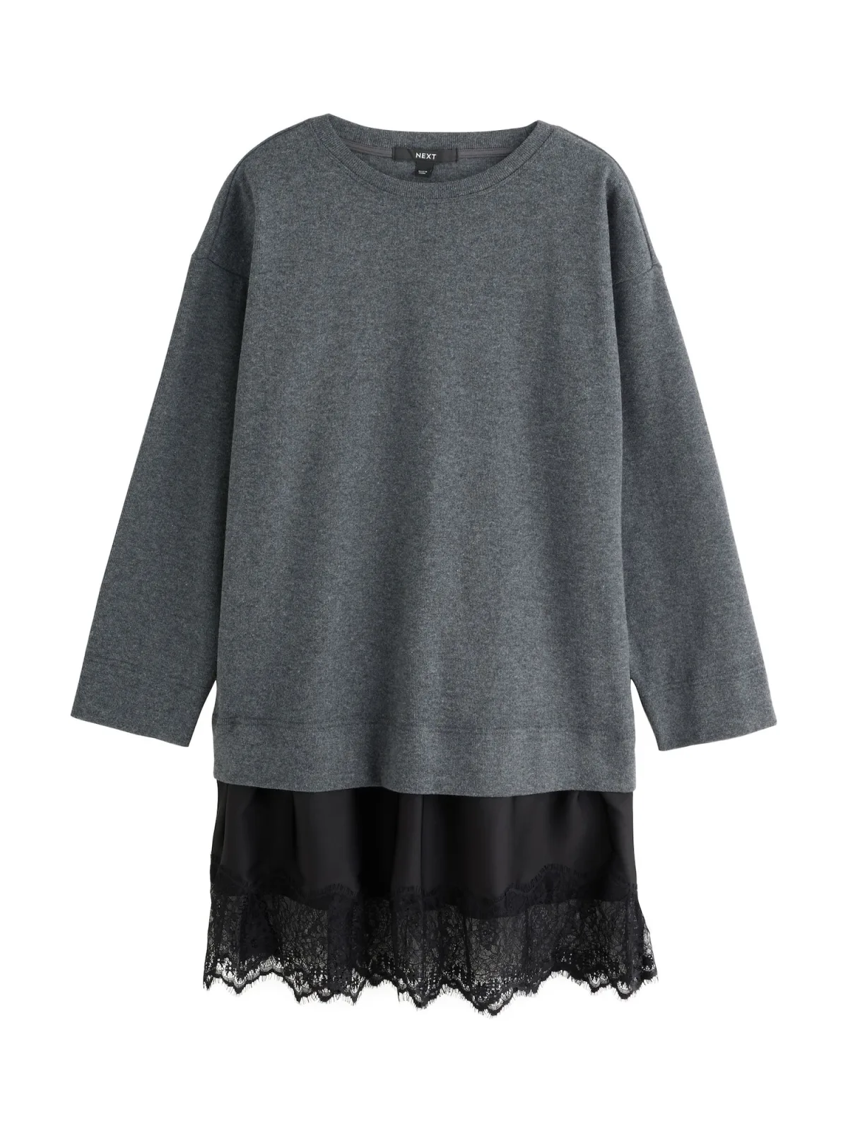 Specificaties: Next Gebreide jurk grijs gemêleerd / zwart