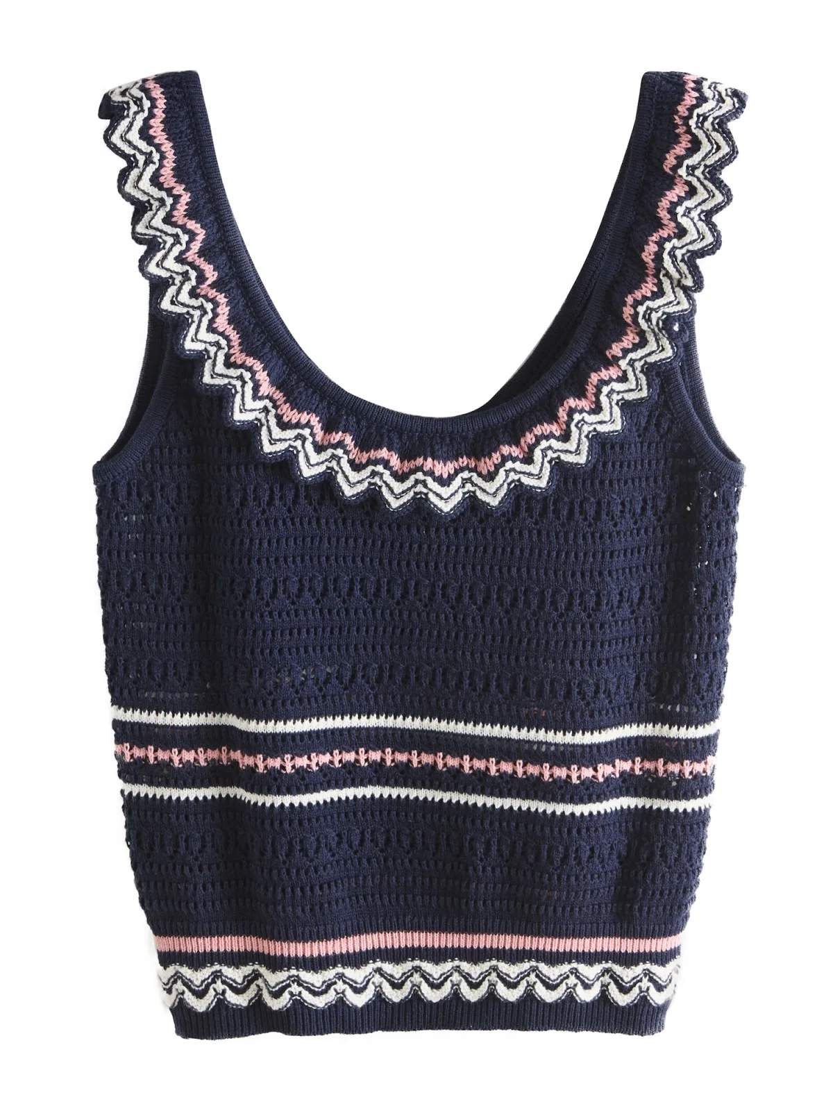 Design: Rechte zoom; Materiaal: Knitwear; Details: Volant, Mesh; Extra's: Fully fashioned, Voelt zacht aan; Pasvorm: Normale pasvorm