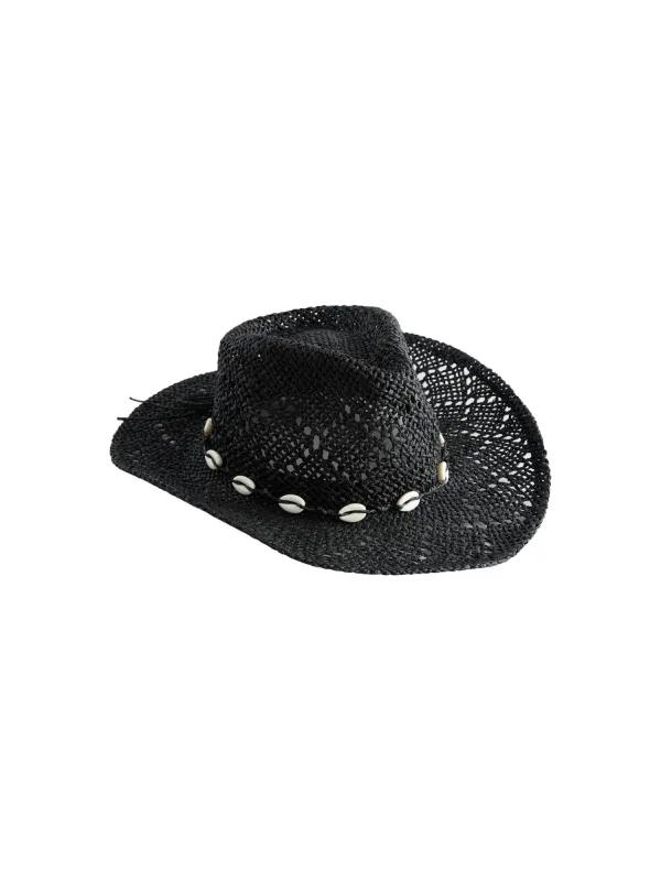 Design: Sealed edges; Motief: Effen; Materiaal: Stro materiaal; Type hoed: Cowboyhoed; Extra's: Applicaties, Stevige stof