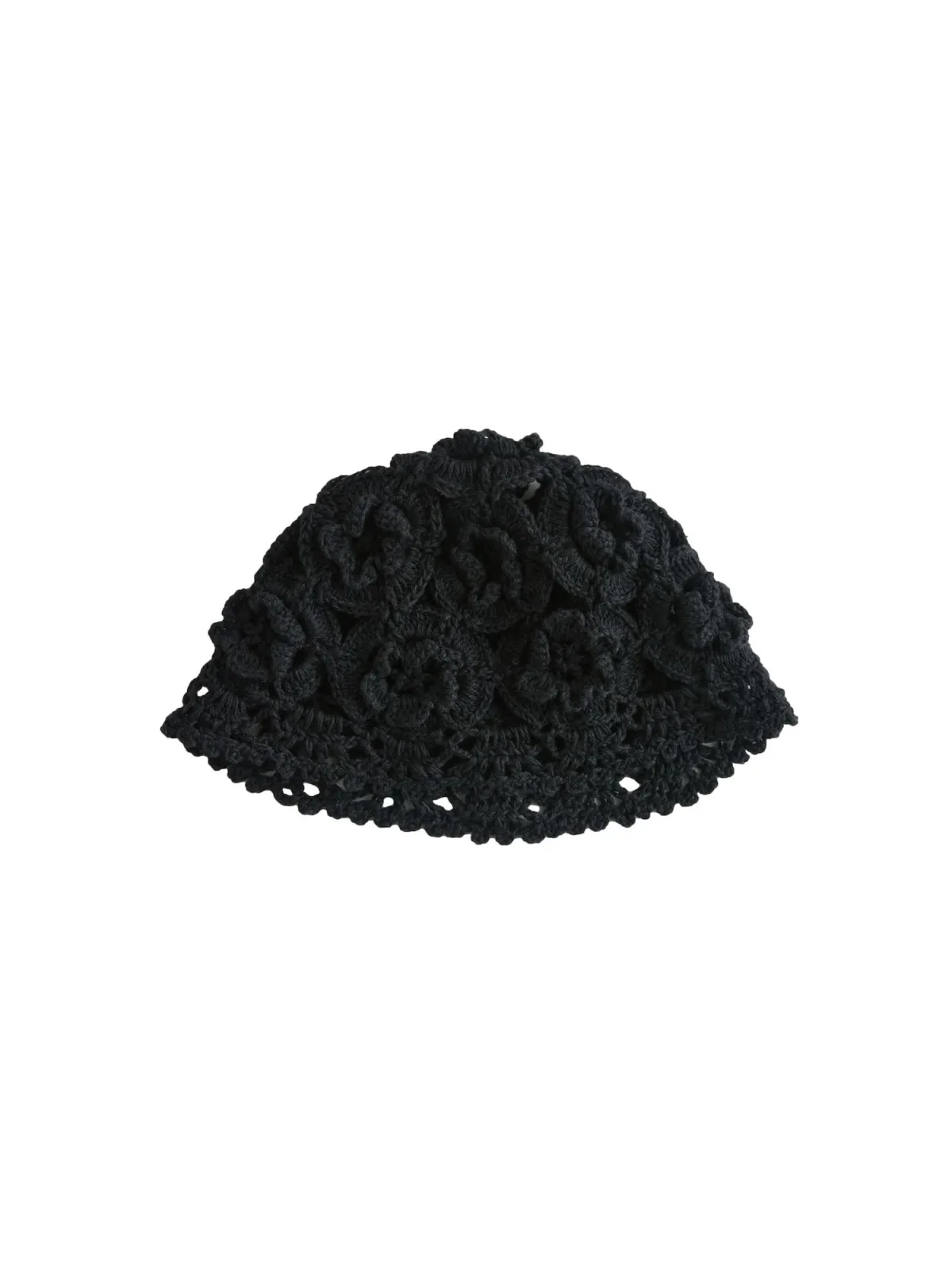 Design: Geschulpte zoom; Motief: Effen; Materiaal: Gehaakt; Type hoed: Cloche hoed; Extra's: Met textuur