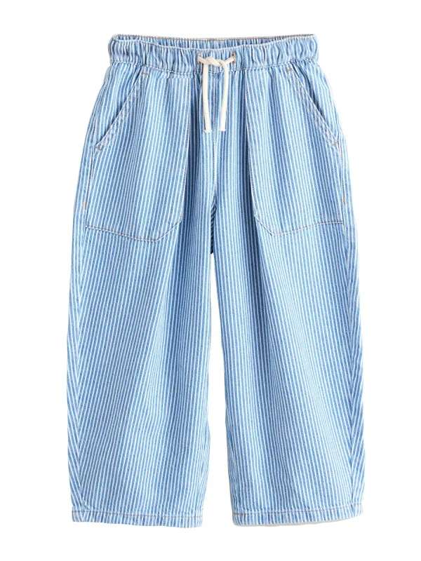 Design: Om te knopen/binden, Paspelzak; Materiaal: Denim; Motief: Krijtstrepen; Details: Gedrapeerd; Extra's: All-over patroon, Stevige stof; Wassing: Colored denim; Lengte: Lang/maxi; Pasvorm: Baggy