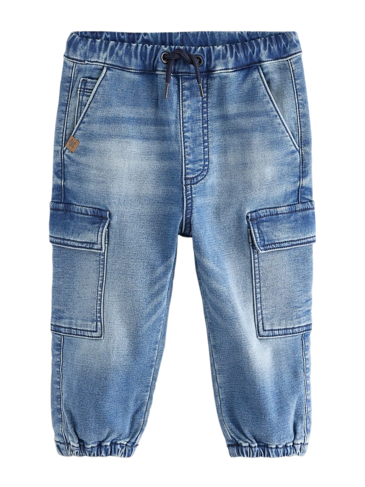 Design: Taille met trekkoord, Cargozak, Zakken aan de zijkant, Elastische inzetstukken; Type sluiting: Elastische band; Materiaal: Denim; Motief: Effen; Extra's: Contrasterende naden; Wassing: Heavy washed; Lengte: 7/8 lengte; Pasvorm: Normale pasvorm; Pasvorm: Regular