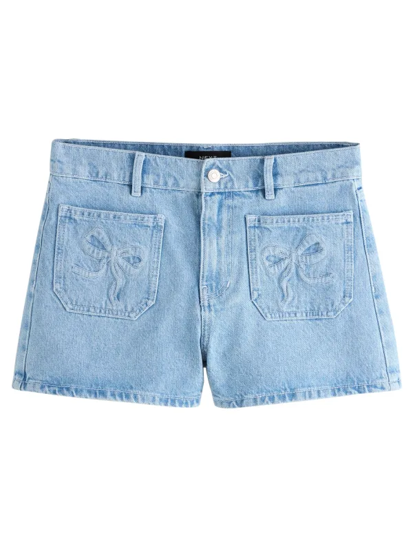 Design: Gevoerde zoom/rand, Ritssluiting, Opgezette zakken, Achterzak, Siernaad; Type sluiting: Knoopsluiting; Materiaal: Denim; Motief: Effen; Extra's: Contrasterende naden, Riemlussen; Wassing: Light washed; Lengte: Kort/mini; Pasvorm: Regular; Taillehoogte: Mid waist
