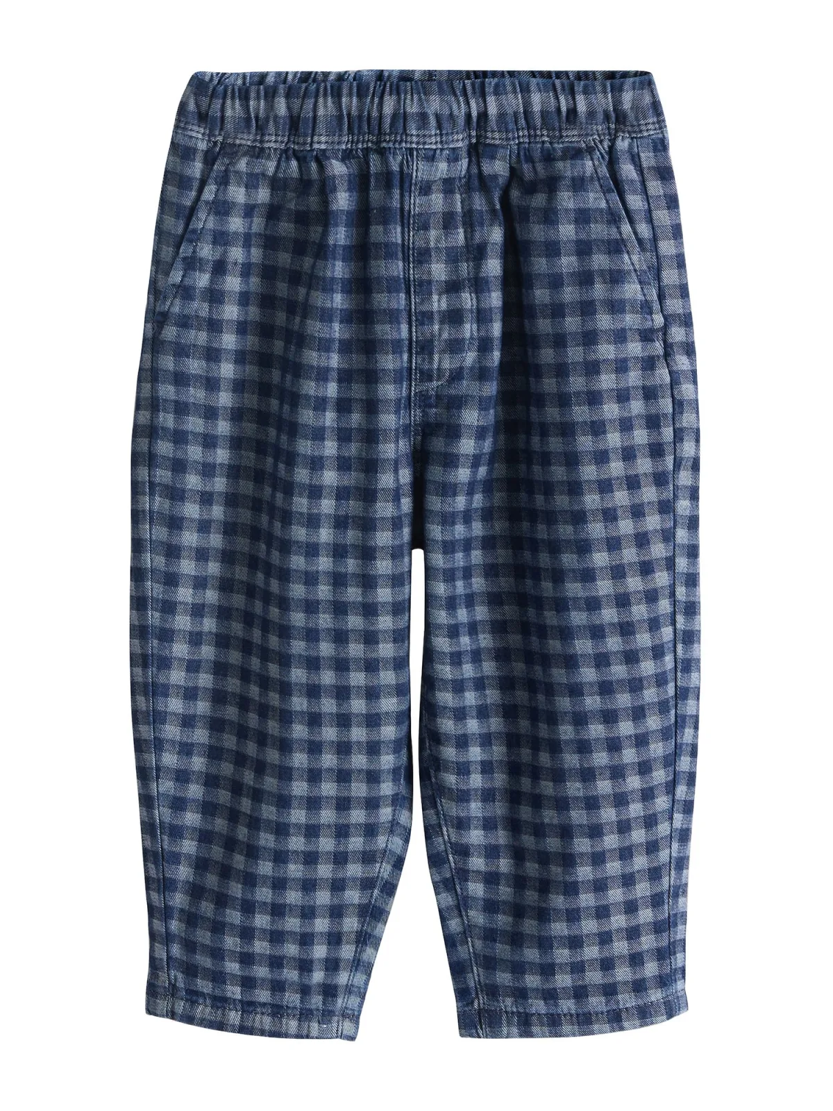 Design: Zakken aan de zijkant; Materiaal: Denim; Motief: Geruit; Extra’s: All-over patroon; Lengte: Lang/maxi; Pasvorm: Wide leg