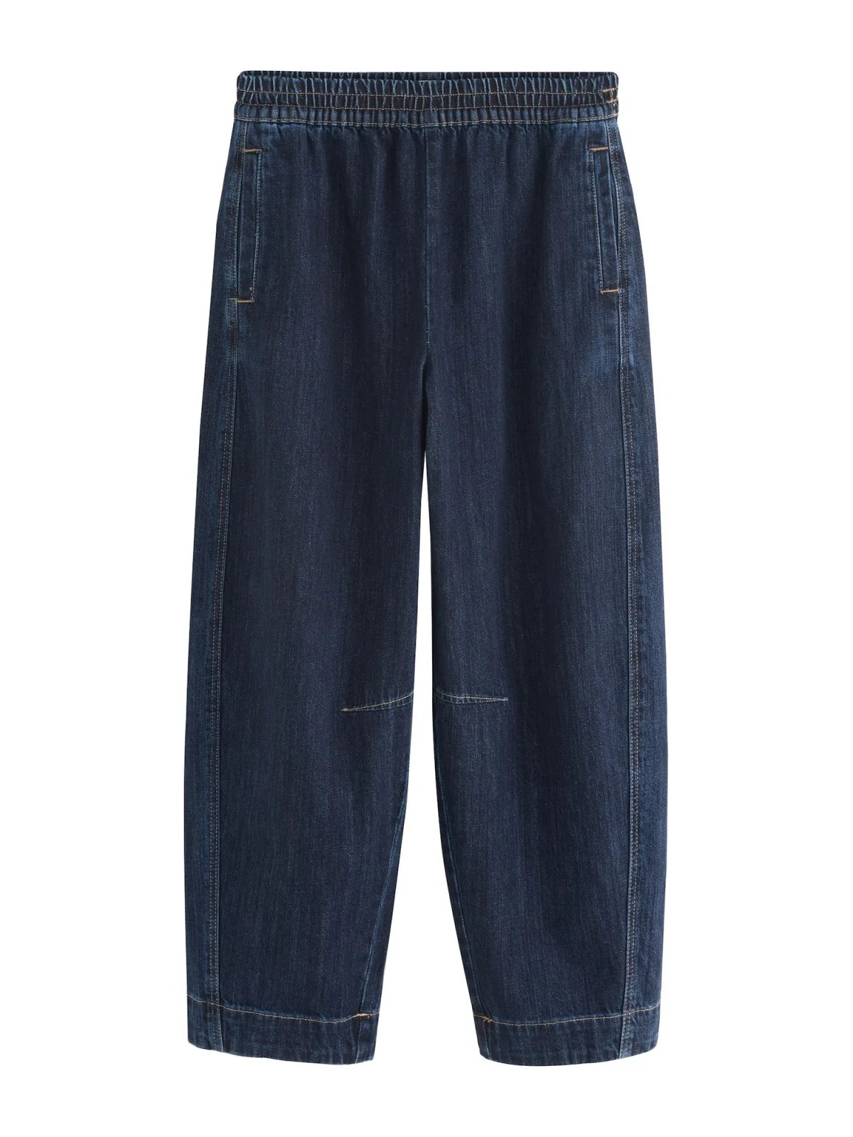 Design: Elastische taille/zoom, Zakken aan de zijkant; Materiaal: Denim; Motief: Effen; Details: Gedrapeerd; Extra's: Contrasterende naden; Wassing: Heavy washed; Lengte: Lang/maxi; Pasvorm: Vat; Taillehoogte: High waist