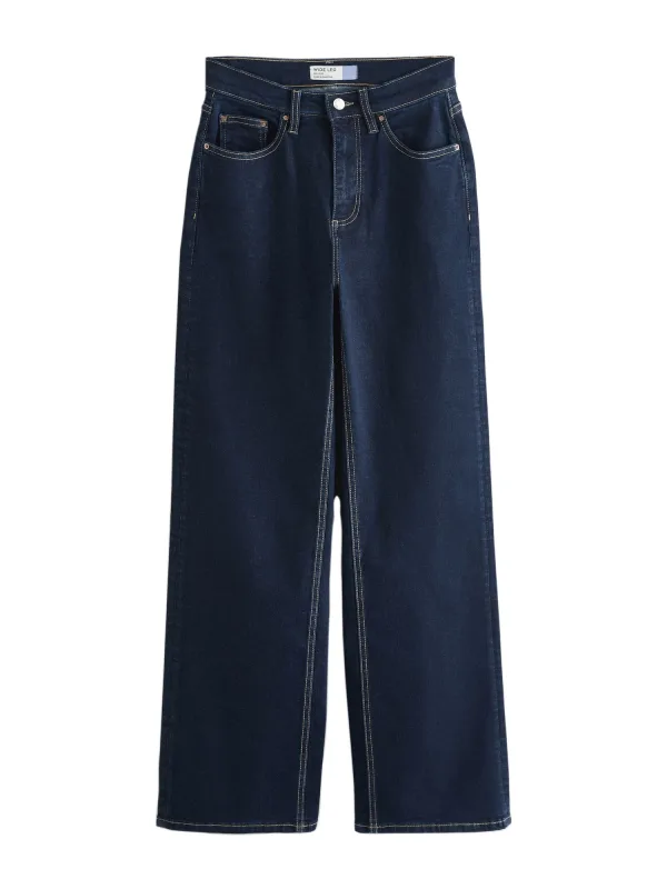 Design: 5-pocket-style; Type sluiting: Ritssluiting; Materiaal: Denim; Motief: Effen; Extra’s: Riemlussen; Wassing: Rinsed/dark washed; Lengte: Lang/maxi; Pasvorm: Wide leg; Taillehoogte: High waist