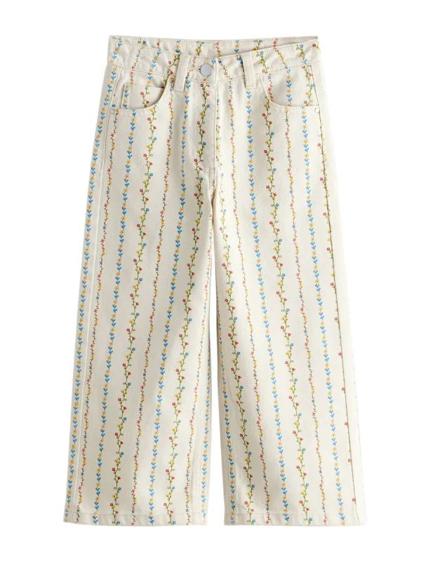 Design: 5-pocket-style; Type sluiting: Ritssluiting; Materiaal: Denim; Motief: Bloemenprint; Extra's: All-over patroon; Lengte: Lang/maxi; Pasvorm: Wide leg