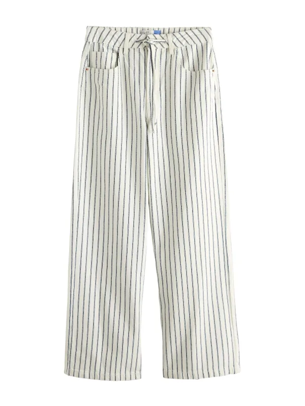 Design: Gevoerde zoom/rand, 5-pocket-style, Knop sluiting; Type sluiting: Ritssluiting; Materiaal: Denim; Motief: Gestreept; Extra's: All-over patroon; Lengte: Lang/maxi; Pasvorm: Wide leg; Taillehoogte: High waist