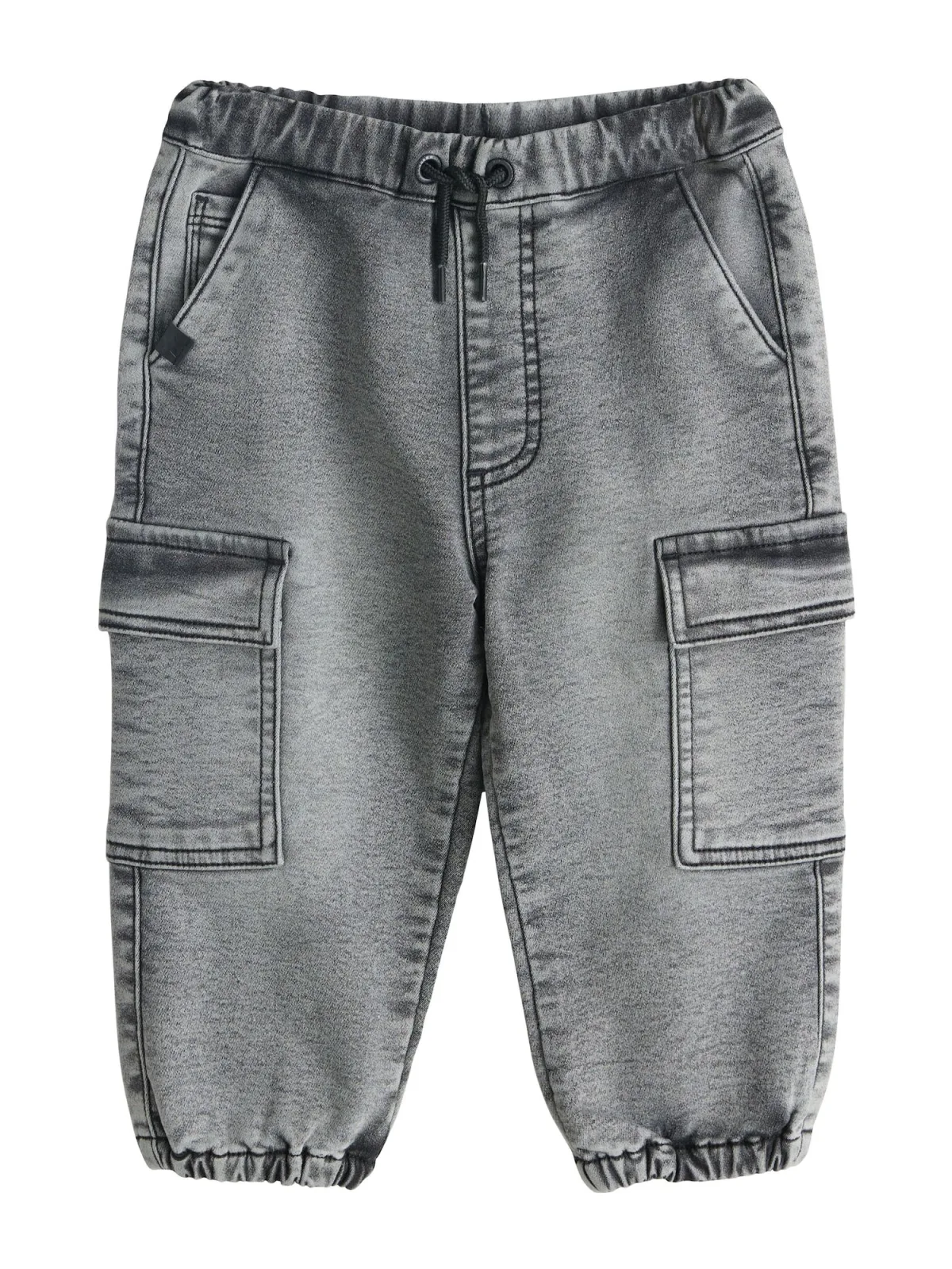 Design: Taille met trekkoord, Cargozak, Zakken aan de zijkant; Type sluiting: Elastische band; Materiaal: Denim; Motief: Effen; Wassing: Heavy washed; Lengte: 7/8 lengte; Pasvorm: Regular