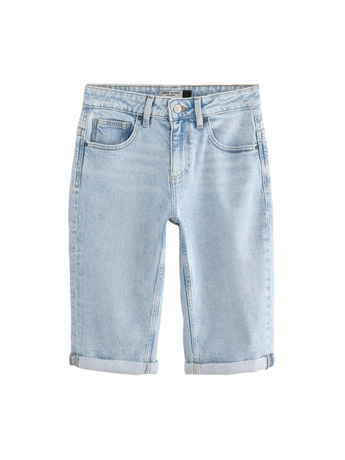 Design: Gevoerde zoom/rand, Ritssluiting, 5-pocket-style; Type sluiting: Ritssluiting; Materiaal: Denim; Motief: Effen; Extra's: Contrasterende naden, Vaste grip, Riemlussen; Wassing: Light washed; Lengte: Knielengte; Pasvorm: Regular; Taillehoogte: Mid waist