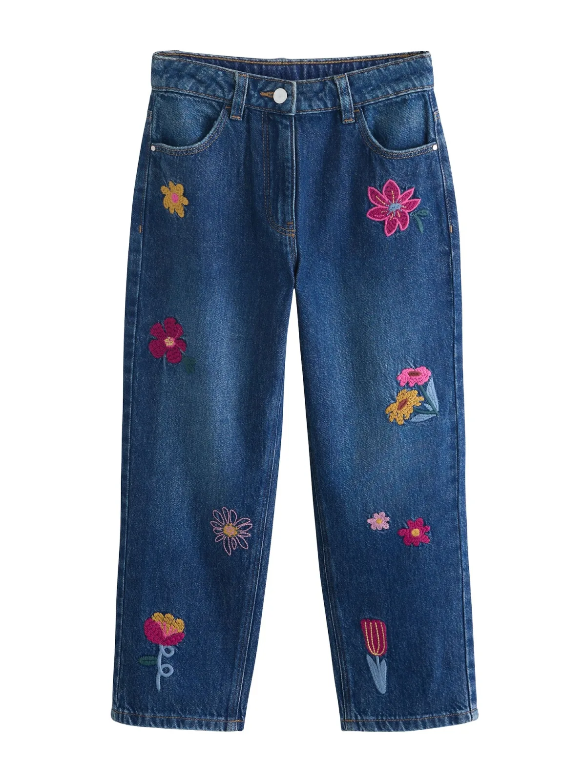 Design: Gevoerde zoom/rand, Ritssluiting, Achterzak, Zakken aan de zijkant; Type sluiting: Ritssluiting; Materiaal: Denim; Motief: Bloemenprint; Details: Borduursels; Extra's: Applicaties, Gewassen effect, Vaste grip, Riemlussen; Wassing: Blauw denim; Lengte: 7/8 lengte; Pasvorm: Loosefit