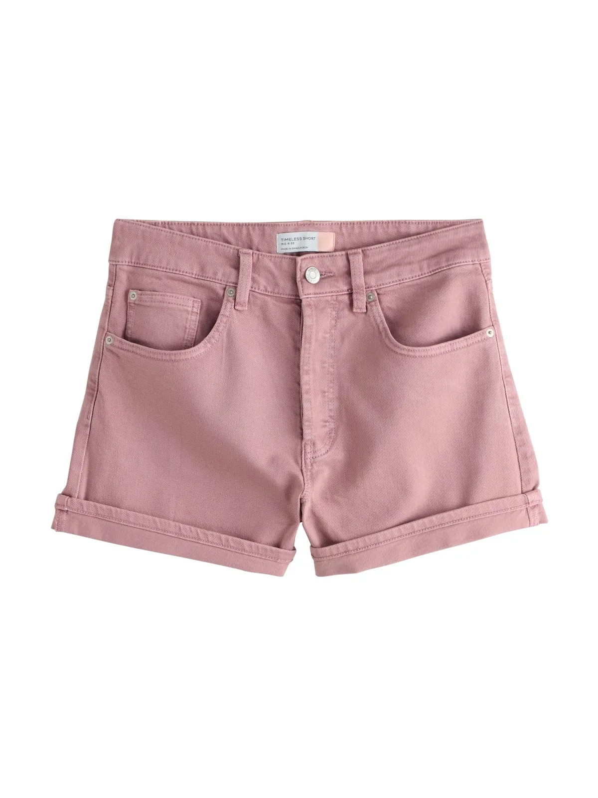 Design: 5-pocket-style; Type sluiting: Knoopsluiting; Materiaal: Denim; Motief: Effen; Extra's: Vaste grip; Wassing: Colored denim; Lengte: Kort/mini; Pasvorm: Regular; Taillehoogte: High waist
