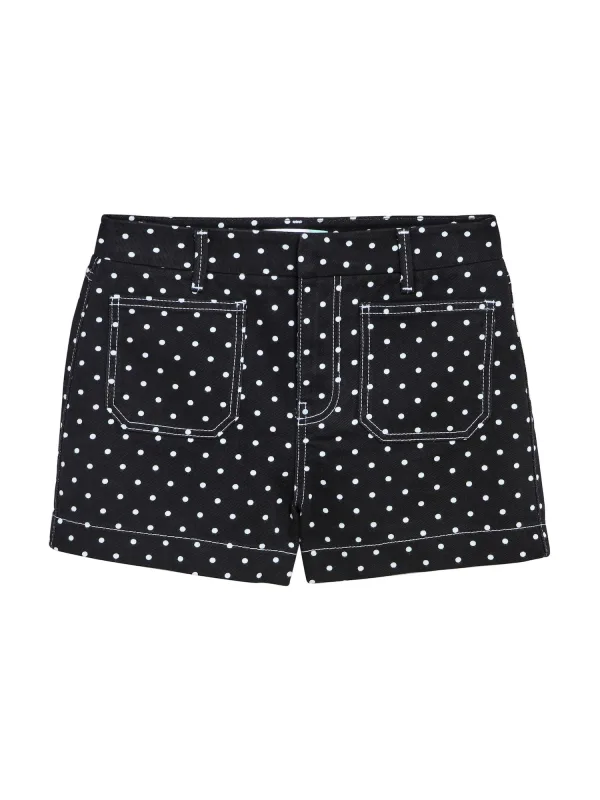Design: Gevoerde zoom/rand; Type sluiting: Ritssluiting; Materiaal: Denim; Motief: Gestippeld; Extra's: All-over patroon; Lengte: Kort/mini; Pasvorm: Regular; Taillehoogte: High waist
