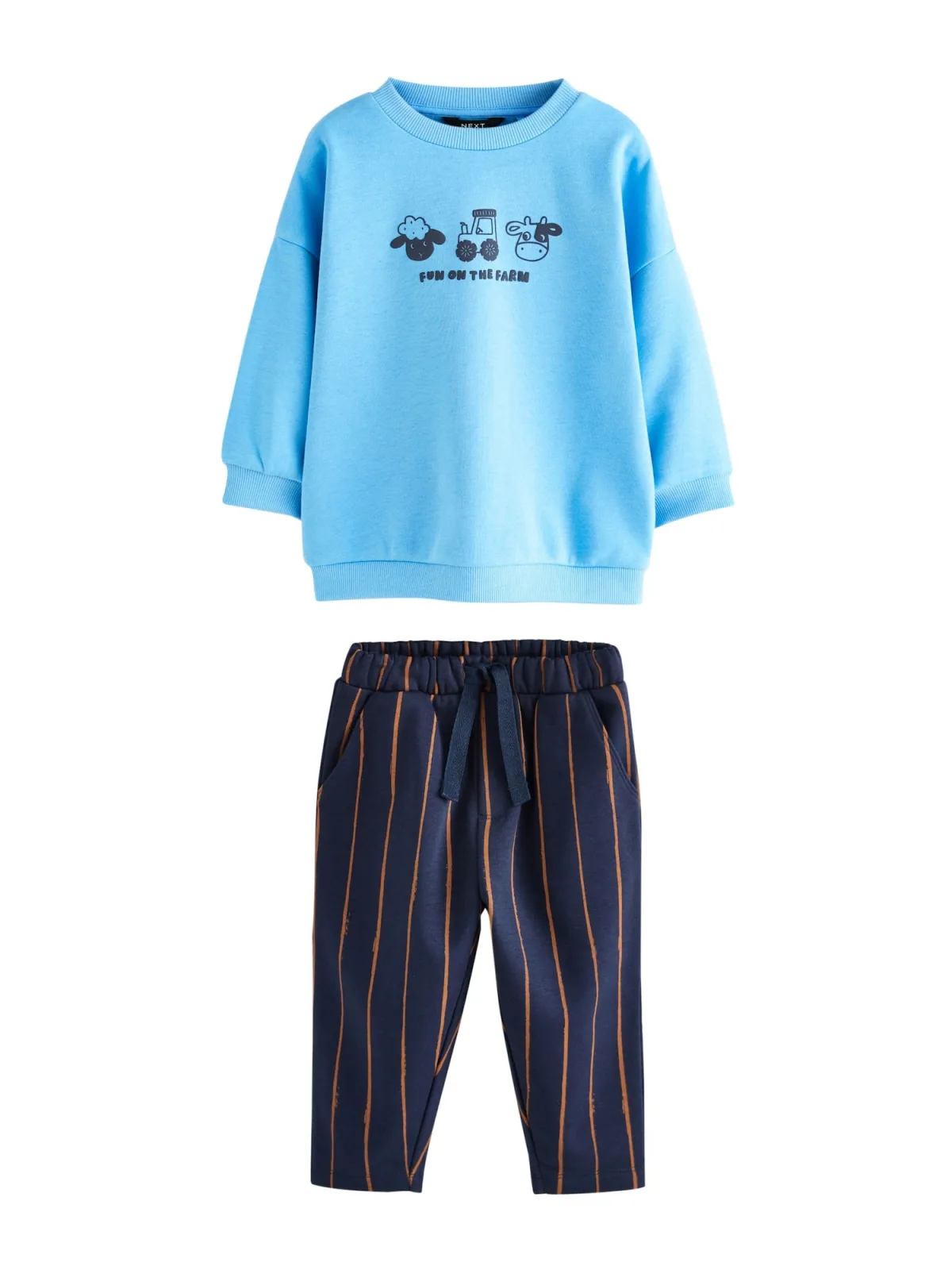 - Bij bol.com kun je Next Set met sweatshirt en joggingbroek met strepen kopen voor slechts €32,00 , dat is 3% goedkoper dan bij ABOUT YOU (€33,15).
