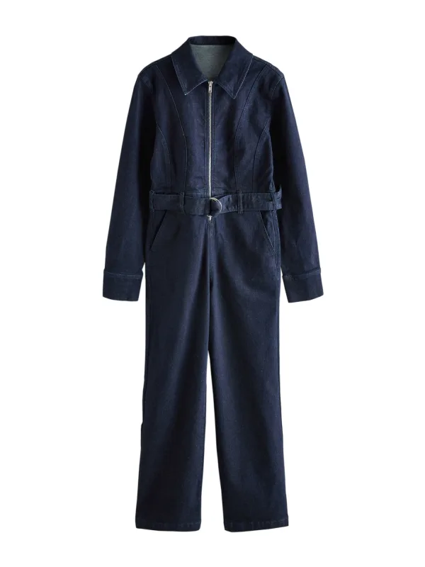 Design: Met riem, Zakken aan de zijkant; Type sluiting: Ritssluiting; Materiaal: Denim; Motief: Effen; Extra's: Op staal naden, Riemlussen; Lengte: Lang/maxi; Pasvorm: Normale pasvorm; Armlengte: Lange mouw