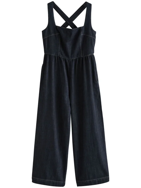 Design: Gevoerde zoom/rand, Rug rits, Zakken aan de zijkant; Type sluiting: Ritssluiting; Materiaal: Denim; Halstype: Carréhals; Motief: Effen; Soort bandjes: Racerback; Extra's: Verstelbare bandjes, Contrasterende naden; Lengte: 7/8 lengte; Pasvorm: Normale pasvorm; Armlengte: Mouwloos
