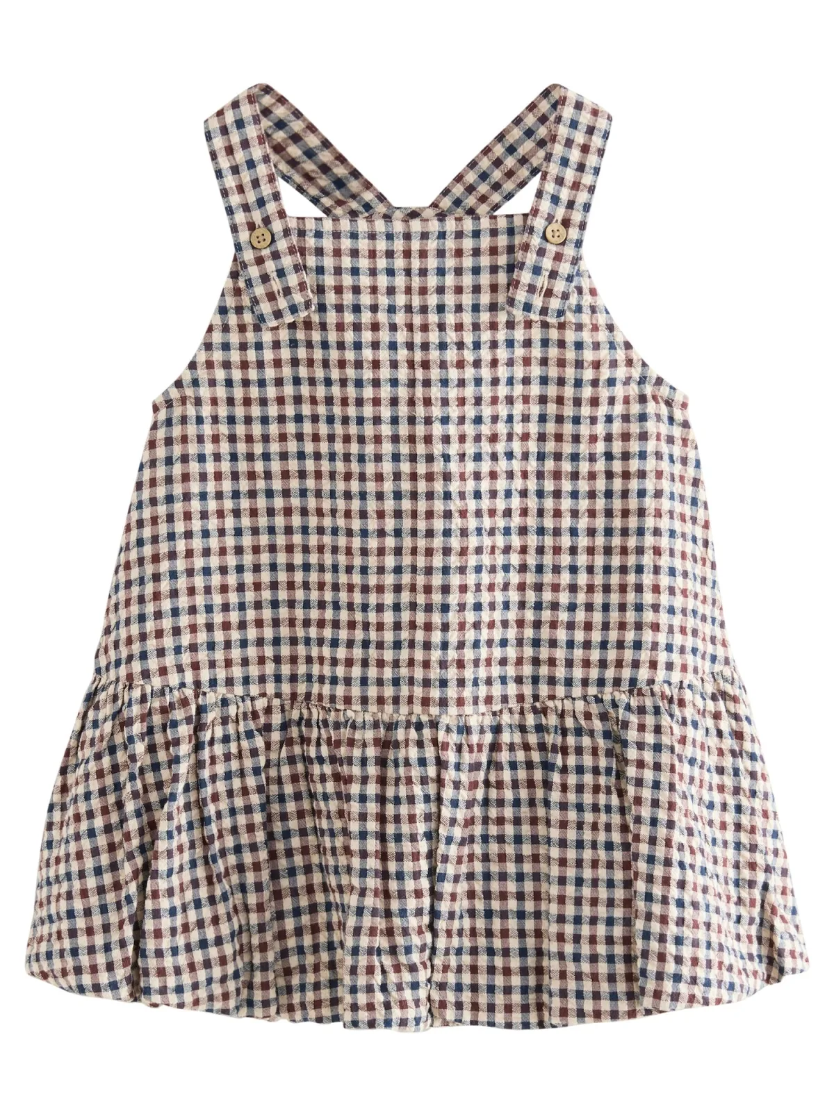 Design: Gevoerde zoom/rand, Flare; Type sluiting: Knoopsluiting; Materiaal: Katoen; Halstype: Carréhals; Motief: Geruit; Soort bandjes: Normale bandjes; Details: Volant; Extra’s: All-over patroon, Voelt zacht aan; Lengte: Knielengte; Pasvorm: Normale pasvorm; Armlengte: Mouwloos