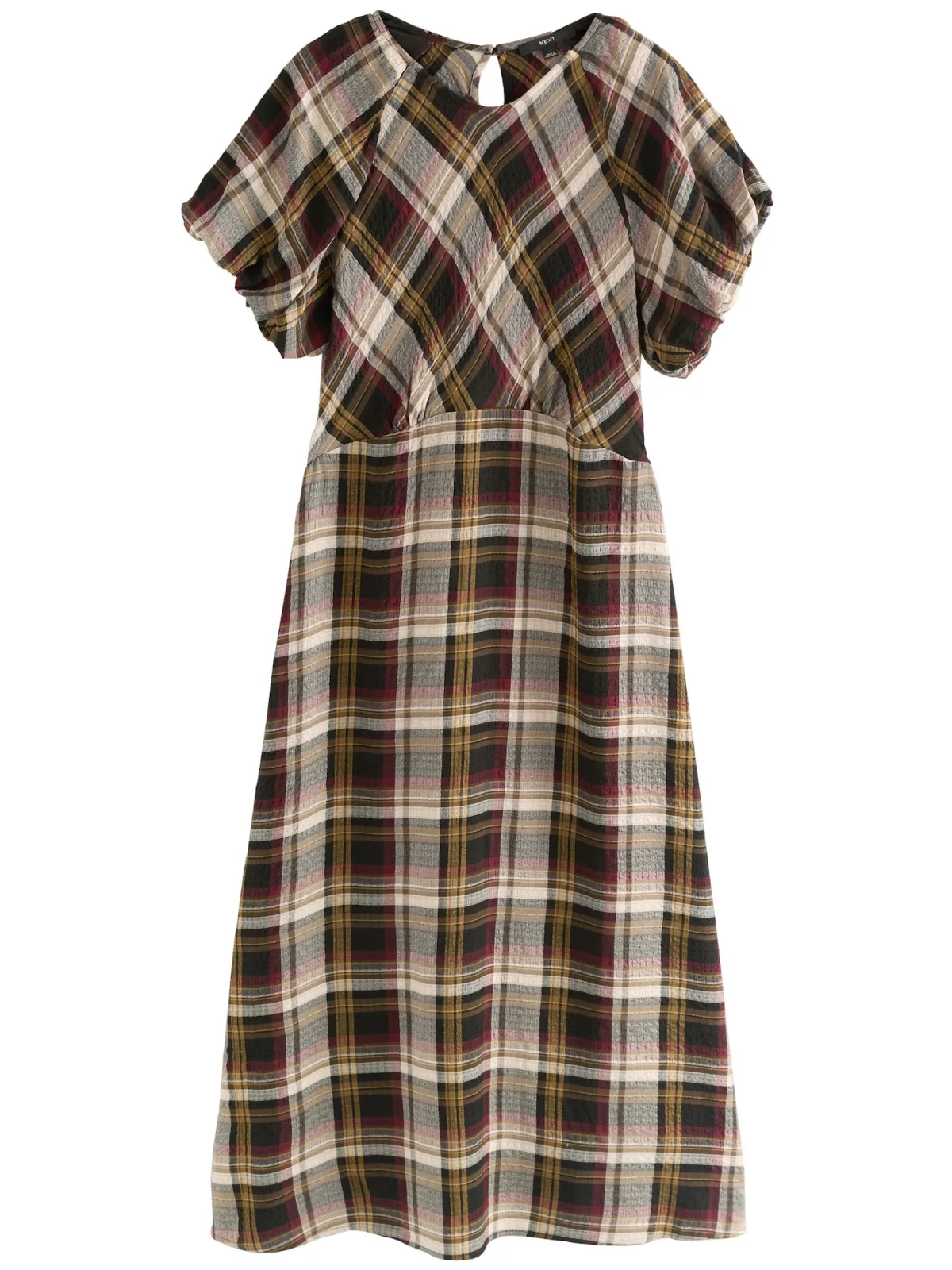 Design: Gevoerde zoom/rand, Pofmouwen; Type sluiting: Knoopsluiting; Materiaal: Viscose; Halstype: Ronde hals; Motief: Geruit; Details: Cut-outs; Extra's: All-over patroon, Voelt zacht aan; Lengte: 3/4 lengte; Snit: Getailleerd; Pasvorm: Normale pasvorm; Armlengte: Kwartmouw