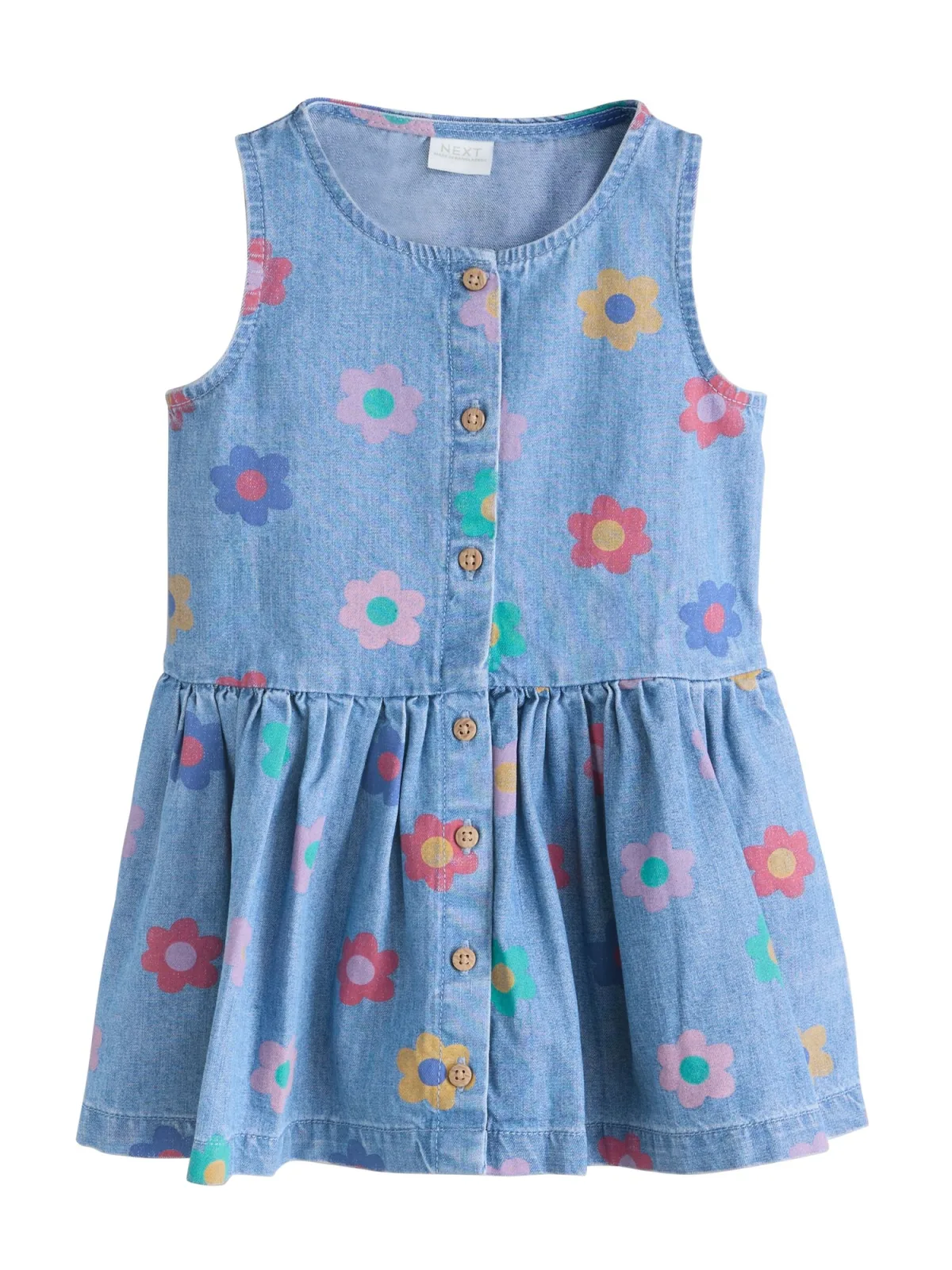 Specificaties: Next Jurk blauw denim / geel / lichtgroen / rosa
