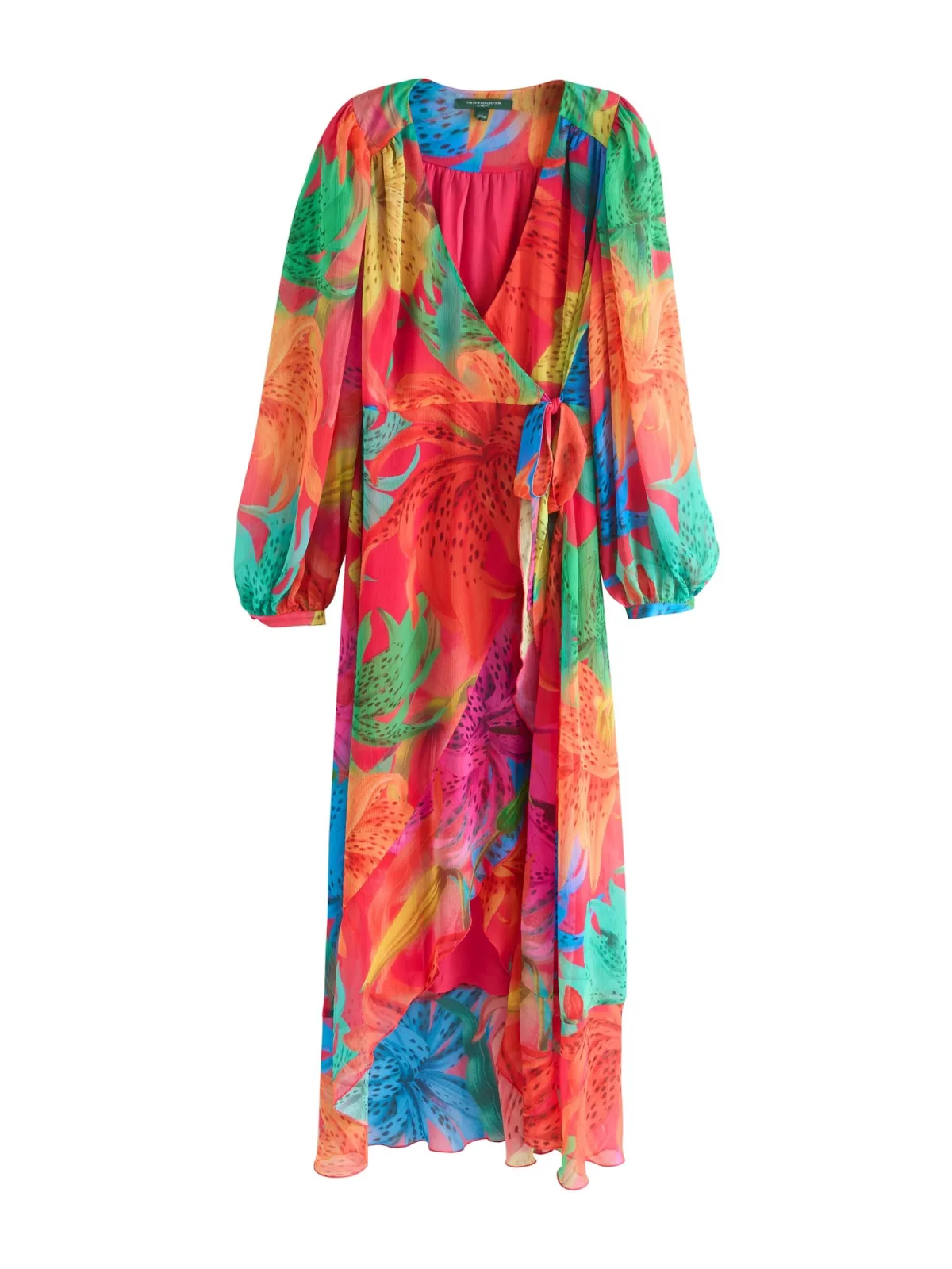 Design: Pofmouwen, Om te knopen/binden; Materiaal: Gerecycled materiaal; Halstype: V-hals; Motief: Bloemenprint; Details: Gedrapeerd, Wikkel design; Extra’s: Milieuvriendelijk geproduceerd; Lengte: Lang/maxi; Snit: Getailleerd; Pasvorm: Normale pasvorm; Armlengte: Lange mouw