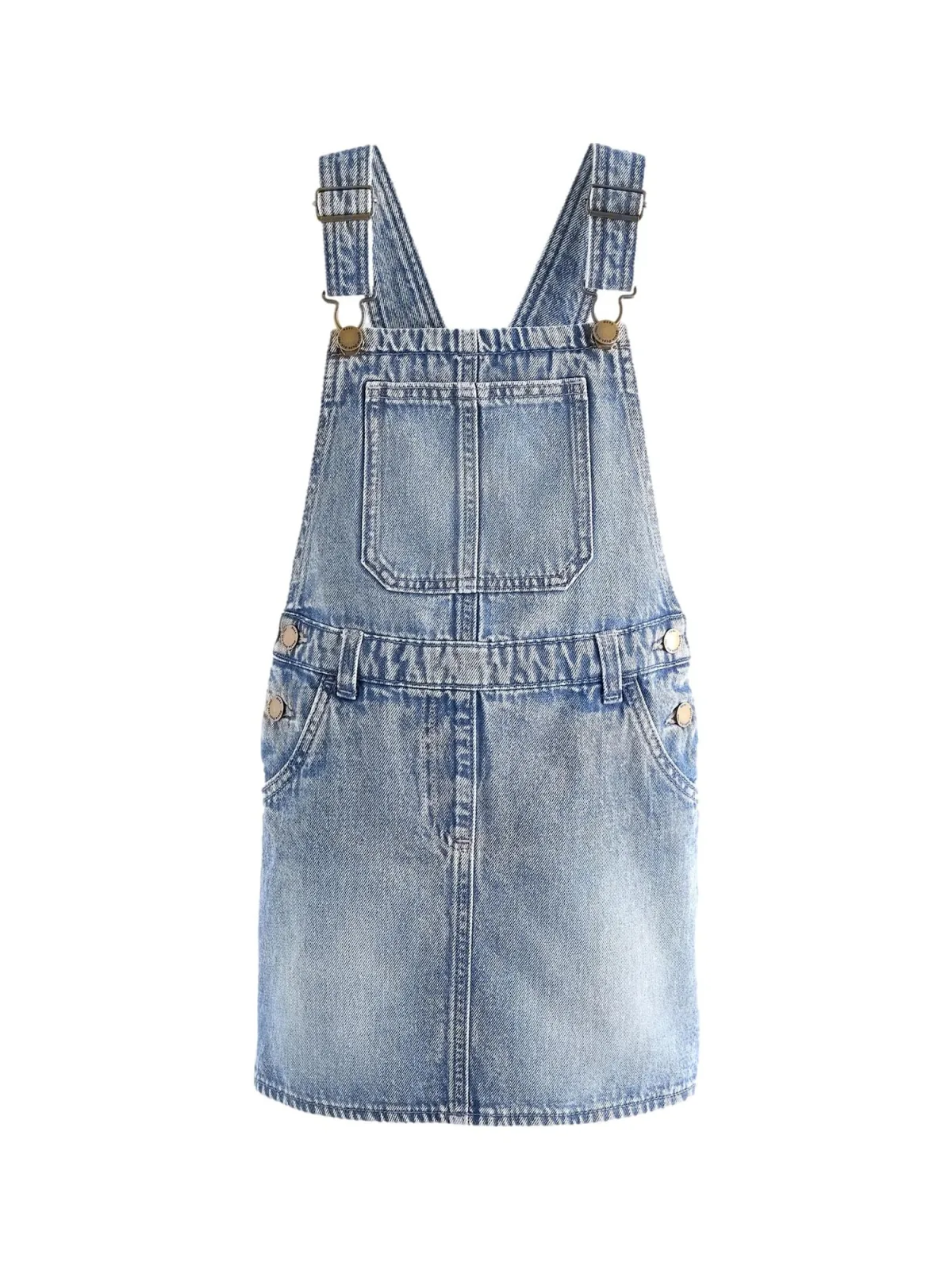 Design: Zakken aan de zijkant, Verstelbare riemen; Type sluiting: Haakjes; Materiaal: Denim; Motief: Effen; Soort bandjes: Brede bandjes; Extra's: Contrasterende naden, Gewassen effect; Lengte: Kort/mini; Pasvorm: Normale pasvorm; Armlengte: Mouwloos