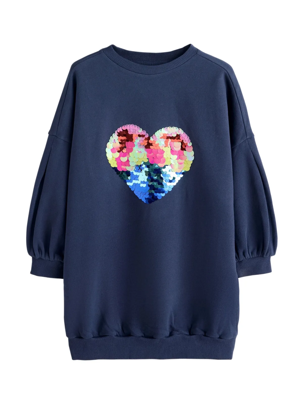 Design: Geribd ceintuurtje, Overcut schouder; Materiaal: Sweatstof; Halstype: Ronde hals; Motief: Motiefprint; Details: Pailletten, Gedrapeerd; Extra's: Applicaties, Voelt zacht aan; Lengte: Knielengte; Pasvorm: Losse pasvorm; Armlengte: Lange mouw