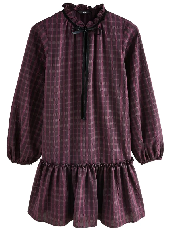 Design: Gevoerde zoom/rand; Halstype: Opstaande kraag; Motief: Geruit; Details: Ruches, Volant, Gedrapeerd; Extra's: All-over patroon; Lengte: Kort/mini; Snit: Ovaal; Pasvorm: Losse pasvorm; Armlengte: Lange mouw